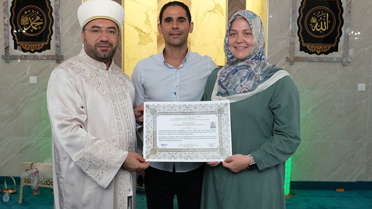 Müftü Fakirullahoğlu, Emily King’e Müslüman olduğunu tasdik eden “İhtida Belgesi”ni takdim etti. Ayrıca, Diyanet İşleri Başkanlığı yayınlarından İngilizce Kur’an-ı Kerim ve Meali ile İslam dini hakkında kapsamlı bilgiler içeren çeşitli eserler hediye etti.