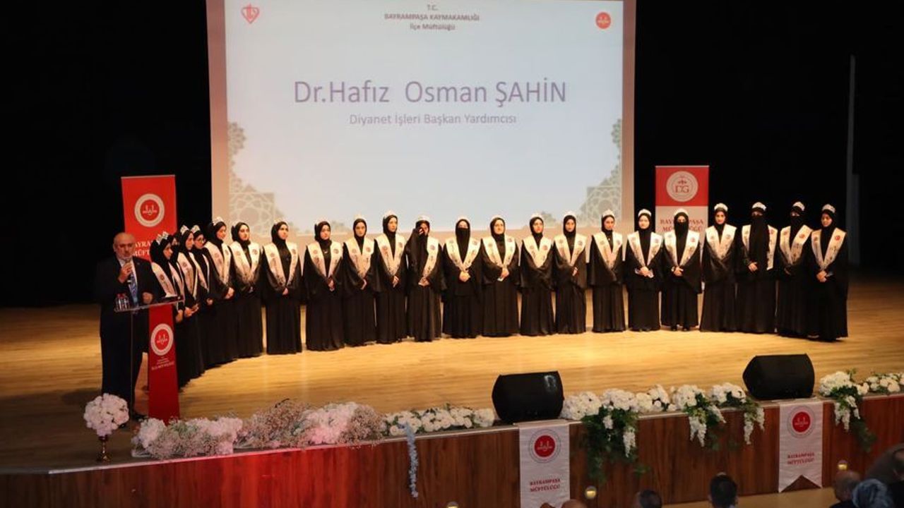 Bayrampaşa İlçe Müftülüğüne bağlı Kartaltepe Yeni Camii Kız Kur’an Kursu’ndan mezun olan 22 öğrenci, törenle icazet aldı.