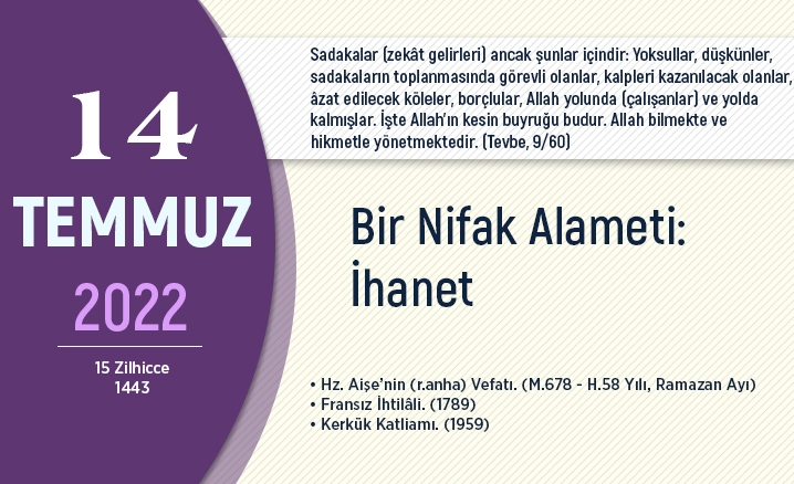 Hainlik etme, arkadan vurma, vefasızlık etme, hor ve hakir görme gibi anlamlara gelen ihanet; emaneti gereği gibi korumayıp zayi olmasına sebep olmak demektir. İhanet, emanet ve güvenilirliğin zıddıdır. Hayatının her döneminde el-Emin olan Peygamberimiz (s.a.s.) emanete sadakati ve ihanetten uzak durmayı iman ile bağdaştırarak “Münafığın alameti üçtür: Konuştuğunda yalan söyler, kendisine bir şey emanet edildiğinde ihanet eder ve verdiği sözde durmaz.” (Buhârî, Vesâyâ, 8) buyurarak müminlerin hain olamayacağını vurgulamıştır.