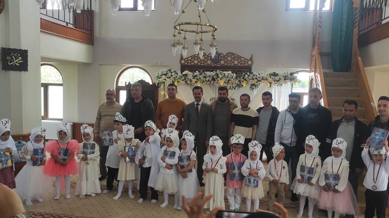 Doğanşehir Müftülüğü 4-6 Yaş Kur’an Kursu’nda eğitim gören minik öğrenciler için anlamlı bir tören düzenlendi. Kur’an-ı Kerim’i öğrenmeye başlayan öğrenciler için gerçekleştirilen Kur’an’a Geçiş Töreni, duygu dolu anlara sahne oldu. Törende, öğrencilere Kur’an-ı Kerim ve özel olarak hazırlanan “Kur’an Tacı” Doğanşehir İlçe Müftüsü Dr. Hacı Ermiş tarafından takdim edildi. Miniklerin heyecanı ve sevinci gözlerinden okunurken, veliler de bu anlamlı günde evlatlarını yalnız bırakmadı. İlçe Müftüsü Ermiş, törende yaptığı konuşmada, çocuklara küçük yaşta Kur’an sevgisi aşılamanın önemine değinerek, “Bugün burada, yavrularımızın Kur’an-ı Kerim’le tanışmalarına şahitlik etmenin mutluluğunu yaşıyoruz. Rabbim zihin açıklığı versin, Kur’an’ın rehberliğinde bir ömür sürmelerini nasip eylesin.” ifadelerini kullandı. Program, öğrencilerin Kur’an-ı Kerim tilaveti, ilahiler ve dualarla devam etti. Tören sonunda öğrencilere çeşitli hediyeler verilirken, günün anısına hatıra fotoğrafları çekildi.