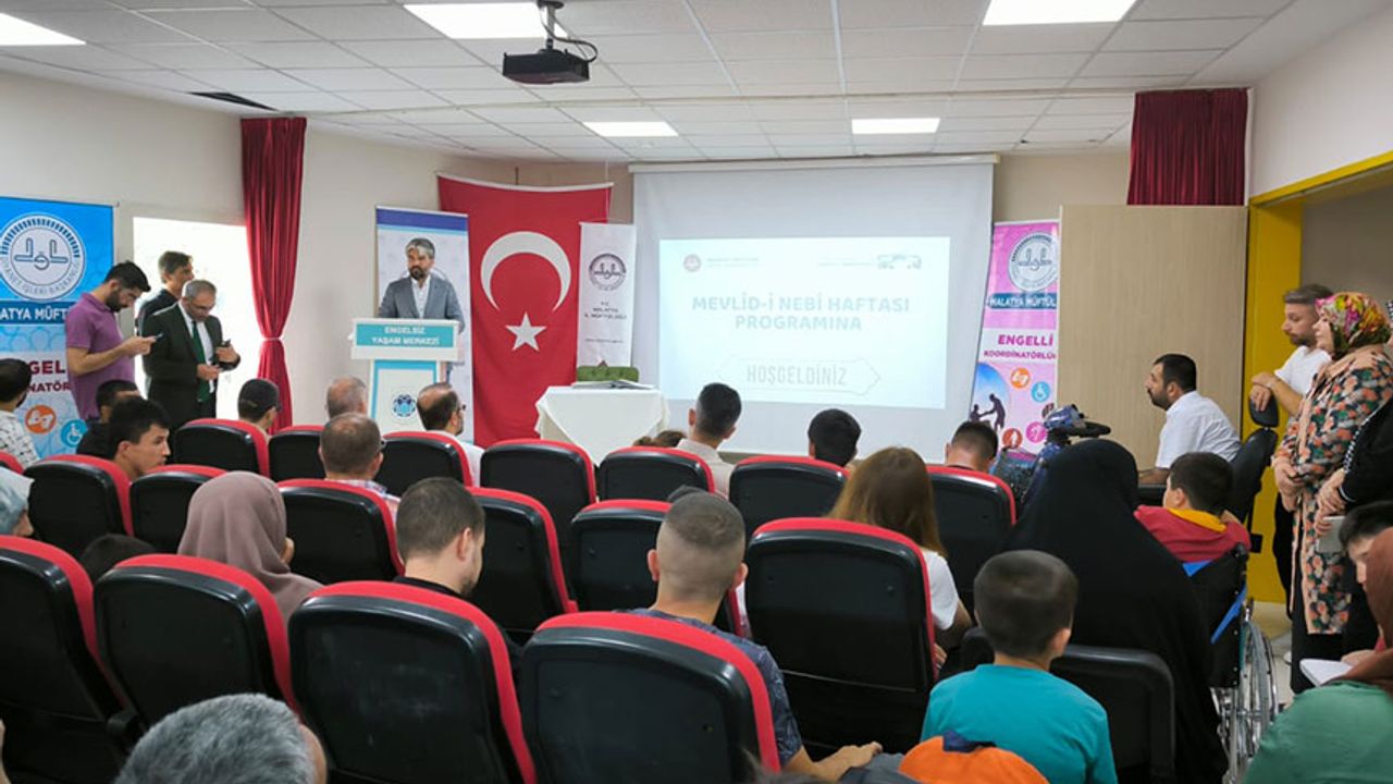 Malatya İl Müftülüğü Engelli Koordinatörlüğü tarafından Mevlid-i Nebi Haftası etkinlikleri çerçevesinde Malatya Engelsiz Yaşam Merkezinde “Peygamberimiz ve Şahsiyet İnşası” temalı program gerçekleştirildi. Programa Malatya İl Müftü Yardımcısı Abdullah Sucu, Battalgazi İlçe Müftüsü Dr. Hüseyin Vuruşkan, Malatya Engelsiz Yaşam Merkezi idareci ve öğretmenleri ile engelliler ve aileleri katıldı. Braille Alfabesiyle okunan açılış Kur’an-ı kerimden sonra Diyanet İşleri Başkanlığı tarafından hazırlanan sinevizyon gösterimi izletildi. Programda konuşan Malatya il Müftü Yardımcısı Abdullah Sucu, Hz Peygamberin güzel ahlakını,örnek şahsiyetler yatiştirmesinin metotlarını herkese ve herkesime anlatmanın bu haftanın fırsat olduğunu ifade etti. Sucu, Hz. Peygamberin Abdullah ibni ümmü Mektum gibi Muaz bin Cebel gibi örnek şahsiyetler yetiştirdiğini ifade ederek herhangi bir engeli olan bireyleri kendi haline bırakmamış engeline uygun görevler vererek sosyal hayatın içine dahil ettiğini söyledi.