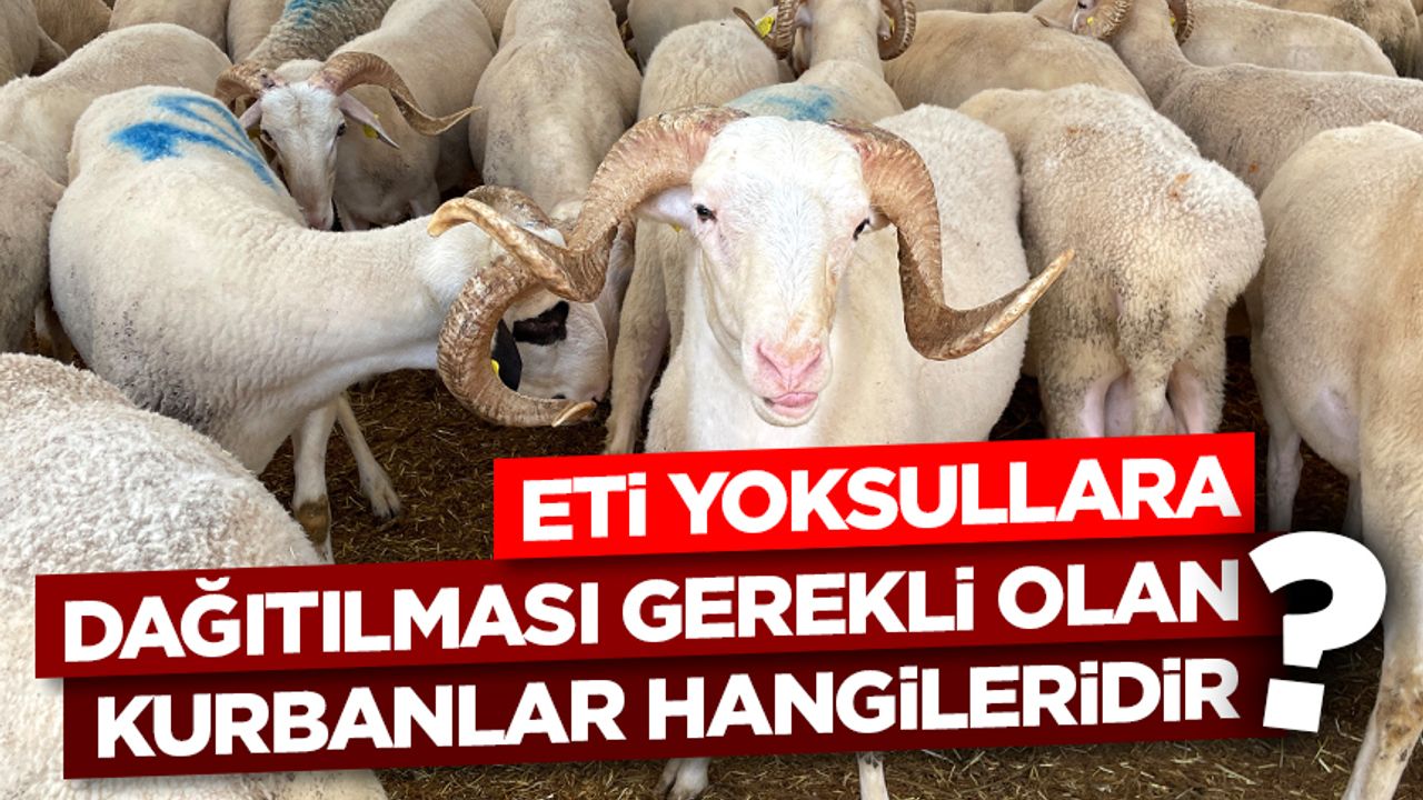 Bazı kurbanlar vardır ki bunların etinin tamamen yoksullara dağıtılması veya yedirilmesi gerekir. Bu kurbanlar şunlardır: a) Adak kurbanı, bu kurbanı adayan kişinin kendisiyle fakir de olsalar çocukları ve onların çocukları, anne ve babasıyla her iki taraftan dedeleri ve büyük anneleri gibi bakmakla yükümlü olduğu kimseler ve zengin olanlar bu kurban etinden yiyemezler. Bu kurban kesildikten sonra tamamen yoksullara dağıtılması gerekir. b) Bir kimsenin hayatta iken, yaptığı vasiyeti üzerine, öldükten sonra varisleri tarafından malının üçte birinden kesilen kurban. Bu kurbandan da ölünün varisleriyle zenginler yiyemezler. Bunun da yoksullara dağıtılması gerekir. Ancak ölünün vasiyeti olmaksızın varisleri tarafından ölü için kesilen kurban böyle değildir. Bu kurbandan onu kesenler de yiyebilirler. c) Kurban günlerinde herhangi bir sebeple kesilmeyen ve sadaka olarak verilmesi gereken kurban. Bu kurban da yenmez, yoksullara sadaka olarak verilmesi gerekir. d) Ortaklaşa kurban kesenlerden bir kısmı edaya, bir kısmı da kazaya niyet ederse bu hayvanın eti, kurban kesenler ve yakınları tarafından yenmez, tamamı sadaka olarak dağıtılır. Çünkü kurban bayramı günlerinde kesilmeyen kurban kaza edilmez. Bu, kurban olmaktan çıkıp sadakaya dönüşür. Bu sebeple örneğimizde sadaka hükmündeki hisse kurban olmayacağı için (hisselerden birinin et maksadıyla kesilmesi durumunda olduğu gibi) eda niyetiyle kesilen hisseleri de kurban olmaktan çıkarır.