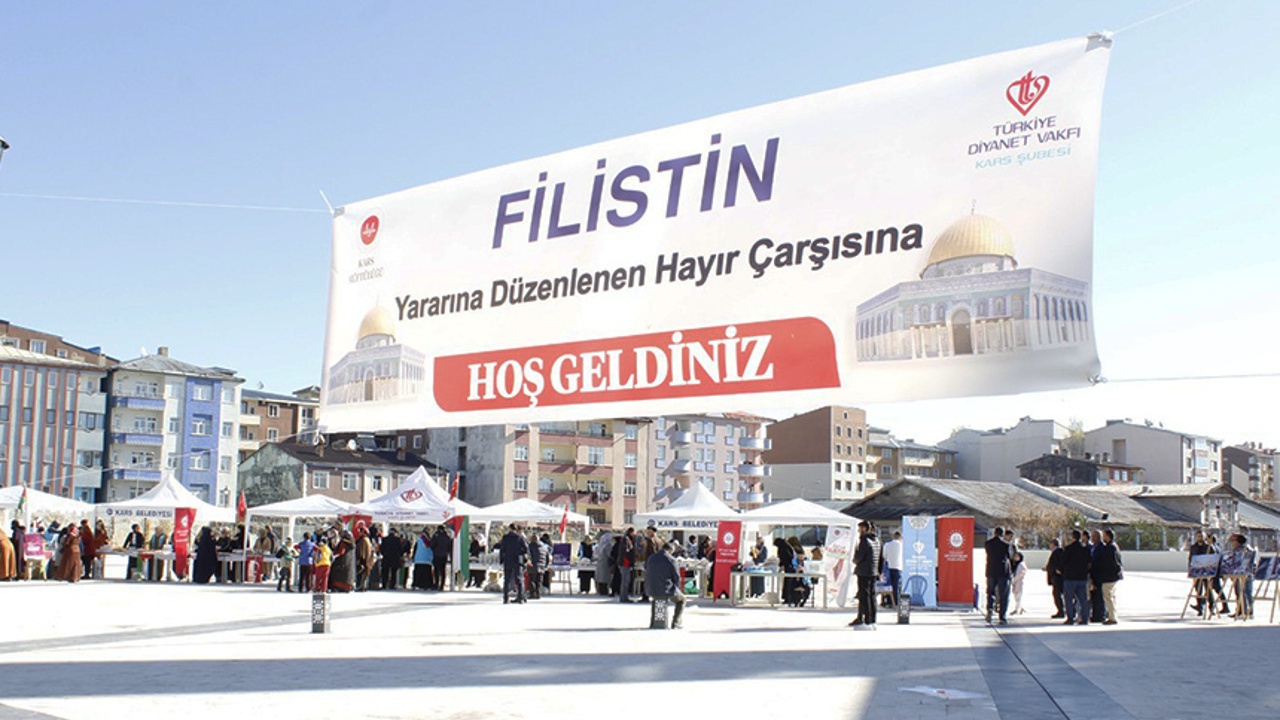 Kars İl Müftülüğü ve Türkiye Diyanet Vakfı (TDV) Kars Şubesi öncülüğünde, TDV Kars Kadın ve Gençlik Kolları, Kur’an kursu öğreticileri, din görevlileri, Kur’an kurslarında eğitim gören kursiyerler ve hayırsever vatandaşların katkıları ile Filistin yararına “Hayır Çarşısı” düzenlendi. Sultan Alparslan Külliye Camii avlusunda düzenlenen Hayır Çarsısına, Kars Valisi Ziya Polat katılarak destek olan herkese teşekkür etti. Kur’an-ı Kerim tilaveti ve dua ile başlayan hayır çarşısına genç, yaşlı, kadın, erkek ve çocuğuyla tüm Kars halkı Filistinli kardeşlerine katkıda bulunmak üzere birbiriyle hayırda yarıştı. Yoğun ilginin olduğu Hayır Çarsısında 221 bin 453 Türk Lirası yardım toplandı. Kars İl Müftüsü Hamza Bayram, “Hayır Çarşısı’nın gerçekleştirilmesinde emeği geçen TDV Kadın ve Gençlik Kolları başta olmak üzere, Kuran Kursu Öğreticileri ve Öğrencilerine, Din Görevlileri ve Kurum personeline, özellikle de katkıda bulunan hayırsever Kars halkına şükranlarımı sunarım.” dedi.