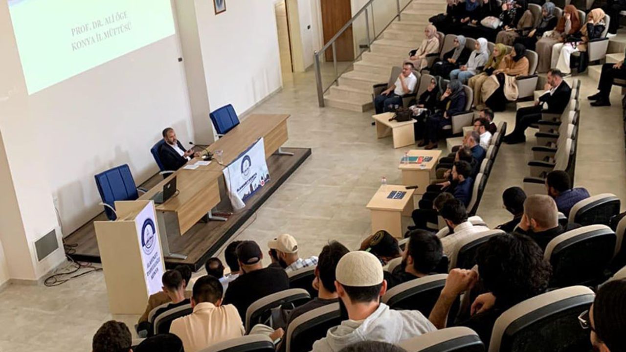 Necmettin Erbakan Üniversitesi İlahiyat Fakültesi Mevlana Amfisi’nde, TDV Konya İl Eğitim Hizmetleri Koordinatörlüğü ile İlahinet Öğrenci Topluluğu tarafından düzenlenen seminere, Konya İl Müftüsü Prof. Dr. Ali Öge konuşmacı olarak katıldı. İl Müftüsü Prof. Dr. Öge, “İlim Ahlak İlişkisi” konulu seminerinde bilginin insanoğlu için ne derece vazgeçilmez öneme sahip olduğunun, İslam’ın bilgiye ne kadar değer verdiğinin, Müslüman fert ve toplumların bilgi ve hikmetle donatılmasının, dolayısıyla İslam ahlakı ile ahlaklanmasının öneminden bahsetti. Programa, Necmettin Erbakan Üniversitesi Ahmet Keleşoğlu İlahiyat Fakültesi Dekanı Prof. Dr. Kamil Güneş, İl Müftüsü Prof. Dr. Ali Öge, fakülte hocaları, koordinatörler ve öğrenciler katıldı. Program, kitap çekilişi ve hediye takdimi ile sona erdi.