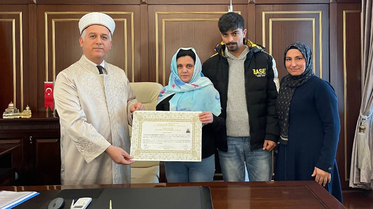 Program sonunda Müslüman olan Zeynep’e “İhtida Belgesi” verildi, Kur’an-ı Kerim ve meali hediye edildi.