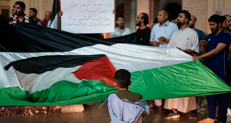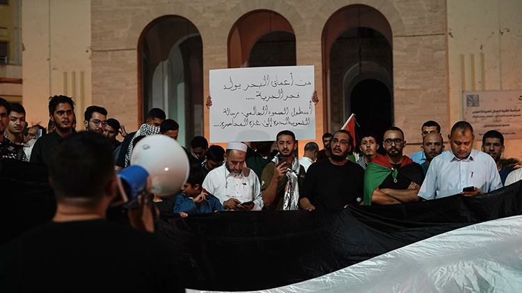 Trablus’taki Cezayir Meydanı’nda toplanan çok sayıda Libyalı, Filistin ve Libya bayrakları taşıyarak İsrail’i protesto eden sloganlar attı.