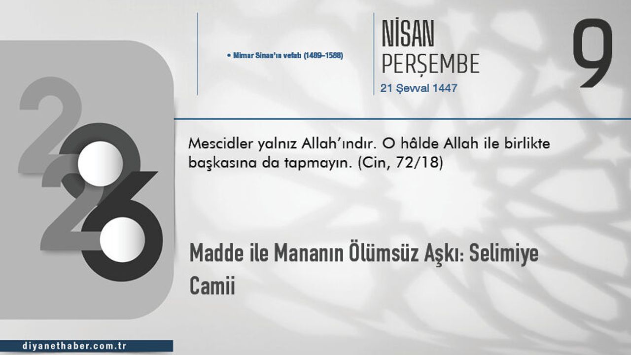 İslam kültür ve medeniyetinin oluşup gelişmesinde önemli rol oynayan camiler, tarih boyunca dinî hayatın ve Müslümanlar tarafından kurulan şehirlerin merkezinde yer almıştır. Camiler, hayatın bütün alanlarına yönelik değerlerin köklerinin birleştiği mekânlar olmuştur. Mimar Sinan’ın 80 yaşında Sultan II. Selim’in emriyle yaptığı ve ustalık eserim dediği Selimiye Camii, dünya mimarlık tarihinin muhteşem eserlerinden biridir. Külliyesinde medrese, dârülkurrâ, sıbyan mektebi, muvakkithâne ve dükkânları barındırmaktadır. Osmanlı mimarisinin ulaştığı en yüksek düzeyi temsil eden Selimiye Camii’nin insanı kucaklayan görkemli kubbesi, Allah’ın birlik ve büyüklüğünü temsil etmektedir. Kubbenin hemen altında yer alan beşerli pencerelerde ise Mimar Sinan, İslam’ın beş şartını anlatmaktadır. Dört minaresi olan Selimiye Camii’nin her birinde üç şerefe bulunmaktadır. “Madde ile mananın ölümsüz aşkı”nın ifadesi olan Selimiye Camii, Müslümanları beş vakit huzura çağırmaktadır.