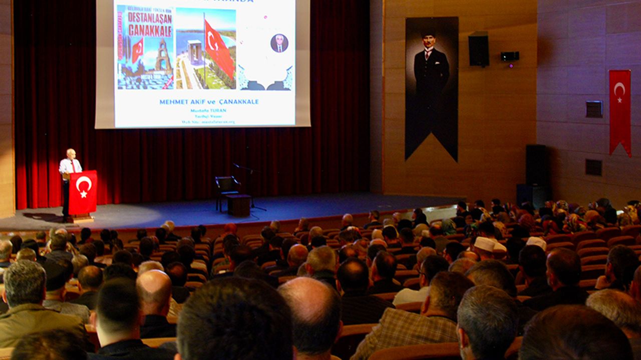100. Yıl Kültür Merkezi Konferans Salonunda Tarihçi Yazar Mustafa Turan iki seans halinde; öğleden sonra İl genelinde görev yapan din görevlilerine, akşam Kur’an kursu öğrencilerine yönelik olarak konferans verdi. Kur’an-ı Kerim tilavetiyle başlayan program İl Müftüsü Ali Erhun’un açış konuşmasıyla devam etti. Çanakkale başta olmak üzere tüm şehitlere Allah’tan rahmet dileyerek konuşmasına başlayan İl Müftüsü Ali Erhun, “İki günü bir olan zarardadır prensibi ile durmadan çalışmamız gerekiyor. Günümüz insanının vahyin müjdesine İslam’ın nuruna en çok ihtiyacı olduğu dönemdeyiz. Görevli ya da emekli fark etmeksizin vatandaşlarımızı İslam’la, vahiyle ve Efendimizin güzel ahlakıyla buluşturmak omuzlarımızdaki en şerefli vazifedir. Cenabıhak yar ve yardımcımız olsun.” ifadelerini kullandı. Ardından kürsüye gelen Tarihçi-Yazar Mustafa Turan, “Diyanet camiamızla buluşmak benim için en büyük şereftir.” ifadesini kullanarak konuşmasına şöyle devam etti: “Devletimizin kurumları arasında ve toplumumuzun çeşitli kuruluşlarından gelen davetlere icabet etmeye çalışıyorum. Eğer bu davet din görevlilerimizle ile beraber olacaksa bende müthiş bir bahtiyarlık ve sevinç oluşuyor. Üzülerek söylemek gerekirse yıllarca din görevlilerimiz tiyatrolarda ve sinemalarda itici ve sevimsiz gösterilmeye çalışılmıştır. Fakat İslam’ın bayraktarlığını ve Kur’an’ın Hizmetkarlığını yapan bu necip ve aziz milletimiz din görevlilerine karşı tiyatro ve sinemalarda gösterilmeye çalışılan bu mesajı asla kabul etmeyerek elinin tersi ile itmiştir. Ben onların tercümanı olarak söylüyorum ki toplumumuzun gönlünde taht kurmuş olan zümrelerin başında din görevlileri gelmektedir. ‘Din-i Mübin-i İslam’ın güzelliklerini anlatan bu güzel insanlar, bu necip millete hizmet ettiğinden dolayı toplumun gönlünde ayrı bir yere sahiptir.” Yoğun bir katılımla düzenlenen konferansın ardından Vali Yardımcısı Mustafa Şahin, katılımından ötürü Tarihçi Yazar Mustafa Turan’a hediye takdim etti. Sonrasında Safranbolu Meşeliboğaz Erkek Hafızlık Kur’an Kursunda “Hafızın Vizyonu, Misyonu ve Motivasyonu” adlı konferans veren Tarihçi Yazar Mustafa Turan , ölçekleri yanlış olanların bütün ölçümlerinin de yanlış olacağını ve Müslümanların iki ölçeğinin var olduğunu belirterek şunları kaydetti: “Birincisi vahiy, ikincisi sünnettir. Vahiy asıldır, sünnet usuldür. Asıl olan hakikate vusuldür. Usul olmadan vusul olmaz. Usul olmazsa fusul olur, fusul ise bozgunculuk demektir. Sünnet olmadan, ümmet olmaz. O halde o sünneti bizlere tanıtan sizlersiniz. Çünkü sizler Peygamber Efendimiz (sav)’in varislerisiniz.” Program hatıra fotoğrafı çekimi ile son buldu.