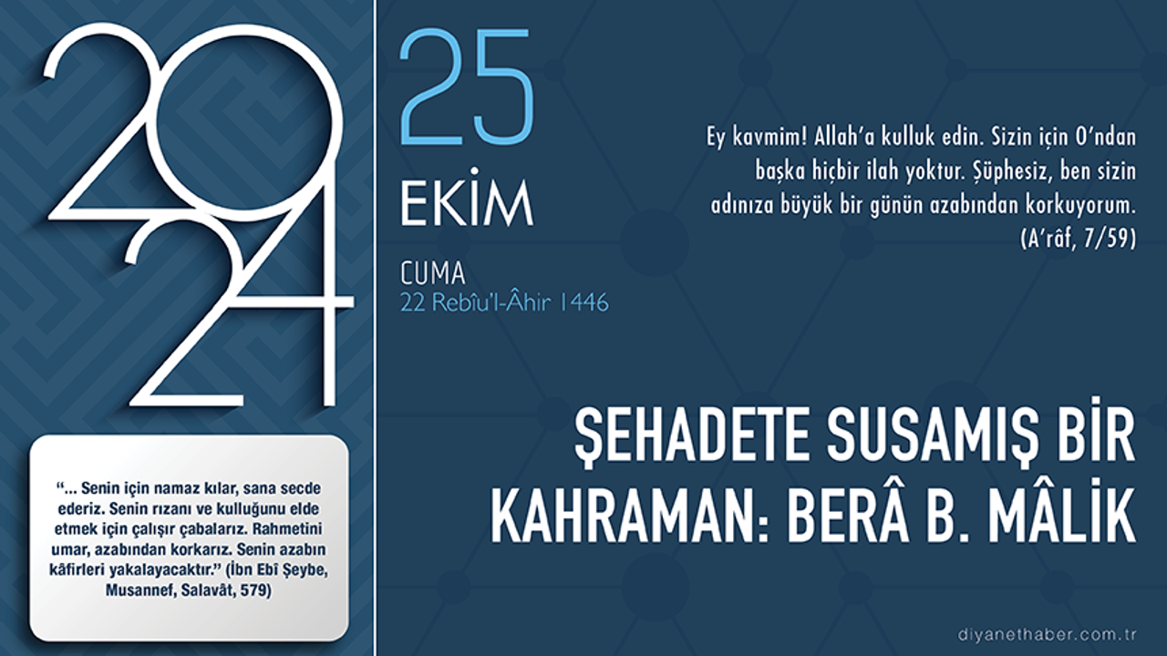 Şehadete susamış bir kahraman: Berâ b. Mâlik Küçük yaşlarda Müslüman olan Berâ, Enes b. Mâlik’in ağabeyidir. Berâ, gözünü budaktan sakınmayan cesaret abidesi bir Müslüman’dır. Bedir Savaşı için hazırlık yapılıp yola çıkıldığı sırada o henüz 14 yaşındadır. Resûlullah’a gelip savaşa katılmak için müsaade ister ancak Hz. Peygamber (sas) orduya dâhil olma yaşını 15 olarak belirlediğinden onun isteğini kabul etmez. Berâ, gözyaşlarına boğulur, üzülerek geri dönmek zorunda kalır. Bir yıl sonra Uhud Savaşı hazırlıklarına başlandığında Berâ artık 15 yaşındadır ve İslam ordusuna katılır. İmanı uğruna düşmanın karşısına korkusuzca çıkar, katıldığı gazve ve muhasaralarda ön saflarda yer alır. Ecelin onu savaş meydanında değil de yatağında yakalama ihtimali Berâ’nın en büyük korkusudur ve şöyle dua eder: “Allah’ım, ne olur ölüm beni yatağımda yakalamasın! Beni yatağımda ölüme teslim etme!” Bu duasının kabul olacağından şüphe etmeyen Berâ, İran’ın fethi için muhasara altına alınan Tüster’de, henüz otuzlu yaşlarında şehadet arzusuna kavuşur. — Bir Hadis: “… Senin için namaz kılar, sana secde ederiz. Senin rızanı ve kulluğunu elde etmek için çalışır çabalarız. Rahmetini umar, azabından korkarız. Senin azabın kâfirleri yakalayacaktır.” (İbn Ebî Şeybe, Musannef, Salavât, 579)