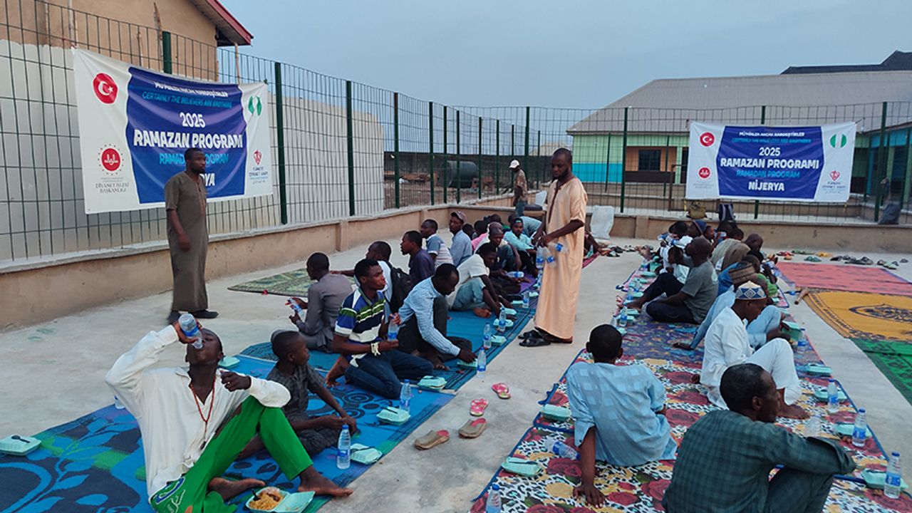 TDV’nin organizasyonu ve Türk hayırseverlerin katkılarıyla Nijerya’da kurulan iftar sofralarında her gün yaklaşık 300 kişi bir araya geliyor. TDV Abuja Din Hizmetleri Müşaviri Hüseyin Ortaç, Türk halkının yardımlarıyla Nijerya’da iftar sofralarının kurulduğunu belirtti. Ortaç, “TDV olarak hayırsever vatandaşlarımızın desteğiyle her gün yaklaşık 300 kişiye iftar ikramında bulunuyoruz. Müslüman kardeşlerimizin Ramazan sevincini paylaşmak bizler için büyük bir mutluluk kaynağıdır.” dedi. İftara katılan Nijeryalı Abdulwahid Salihu ise Türk halkına minnettarlığını dile getirerek, “Onlar bize yardım ediyor, çok teşekkür ederiz. Allah onlardan razı olsun.” ifadelerini kullandı. TDV, her yıl olduğu gibi bu yıl da Afrika başta olmak üzere birçok ülkede ihtiyaç sahipleri için gıda kolileri dağıtıyor, iftar sofraları kuruyor ve çeşitli insani yardım faaliyetlerini sürdürüyor.