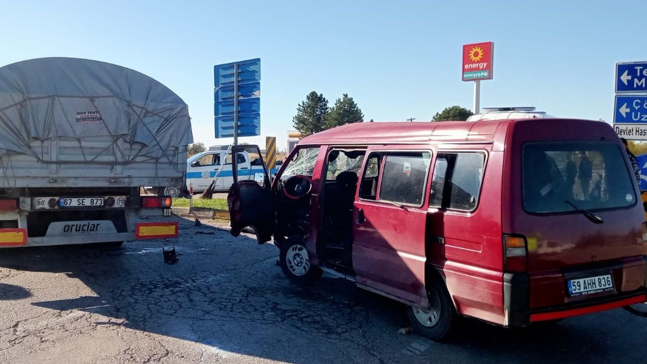 Çevre yolu kavşağında, Ö.B’nin kullandığı 59 AHH 836 plakalı panelvan, aynı yönde seyreden M.Ç. idaresindeki 67 SE 873 plakalı tır ile çarpıştı. İhbar üzerine olay yerine sağlık ve polis ekipleri sevk edildi. Kazada, panelvanda bulunan 12 kişi yaralandı. Yaralılar ilk müdahalelerinin ardından sağlık ekipleri tarafından Hayrabolu Devlet Hastanesine kaldırıldı.