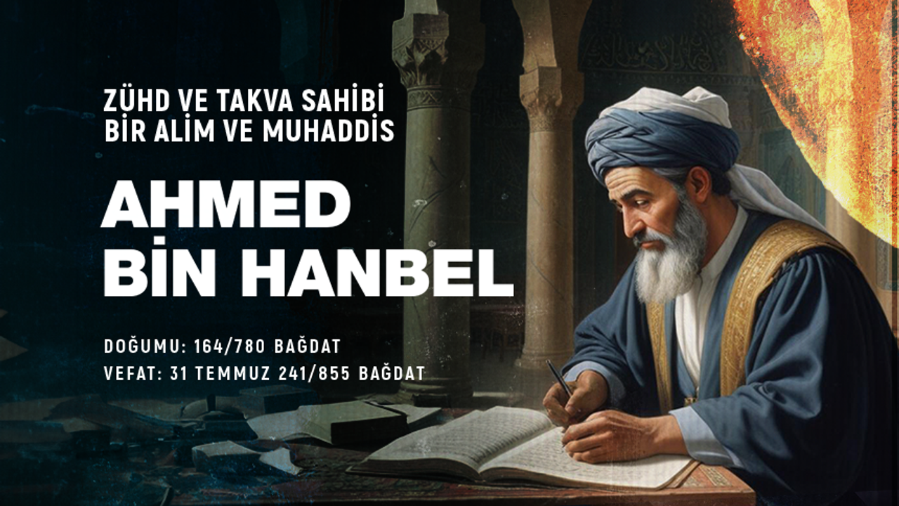 Zühd ve Takva Sahibi Bir Alim ve Muhaddis: Ahmed Bin Hanbel Doğumu : 164/780 Bağdat Vefat : 31 Temmuz 241/855 Bağdat Kur’ân-ı Kerîm’i ezberledikten ve Bağdatlı âlimlerden bir müddet gramer ve fıkıh okuduktan sonra hadis öğrenmeye başladı. (795) Tanınmış muhaddis Hüşeym b. Beşîr, Süfyân b. Uyeyne, Vekî‘ b. Cerrâh, Yahyâ b. Saîd el-Kattân, Abdurrahman b. Mehdî ve Abdürrezzâk b. Hemmâm gibi âlimlerden hadis dinledi ve yazdı. İmam Şâfiî’den fıkıh ve usûl-i fıkıh öğrendi. Buhârî’nin yanı sıra diğer tanınmış talebeleri arasında Müslim, Ebû Dâvûd, Tirmizî, Nesâî gibi kütüb-i sitte müellifleri yer aldı. Kur’an’ın mahlûk olduğunu söylemediği için hapse atıldı. Zulümden kurtulmak maksadıyla halifenin görüşünü kabul eder görünmesini tavsiye edenlere gücendi. Çok sevdiği hocası İmam Şâfiî, Bağdat’ta Ahmed b. Hanbel’den daha faziletli, müttaki, âlim ve fakih bir kimse görmediğini söyledi. En önemli eseri Müsned dışında kendisine nisbet edilen kitapların hiçbirini bizzat kaleme almadı. Müsned, 700.000 hadis arasından seçerek tertip ettiği 30.000 kadar hadise oğlu Abdullah ile talebesi Ebû Bekir el-Katîî’nin birçok hadis ilâve etmesiyle meydana geldi. En hacimli iki hadis külliyatından biri olan Müsned-i İmam Ahmed, sadece sahih hadisleri ihtiva etmesi hedef alınmadığından hasen ve zayıf hadisleri de içine almaktadır.